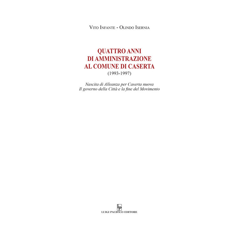 La grave crisi dei partiti politici in Italia per effetto della cosiddetta inchiesta "Tangentopoli" suscitò anche a Caserta nella società civile una forte spinta al cambiamento e un convinto interesse a partecipare alle decisioni riguardanti la città, che trovarono nel Movimento "Alleanza per Caserta Nuova", guardato con occhio favorevole anche dalla Chiesa locale, il punto privilegiato di riferimento e si concretizzarono in affollatissime assemblee per definire il programma e per individuare, attraverso votazione, i candidati da presentare alle elezioni comunali, poi vinte al ballottaggio, del dicembre 1993. Il volume si compone di due parti: nella prima, la Cronistoria, si esamina dettagliatamente, settore per settore, l'intera attività svolta nei quattro anni di governo della città da parte dell'Amministrazione progressista; nella seconda, l'Analisi, si approfondiscono i motivi della pesante sconfitta elettorale subita, dopo la prima ed unica consiliatura, da Alleanza per Caserta Nuova alle elezioni comunali del novembre 1997, che provocò in breve il tacito scioglimento del Movimento.
