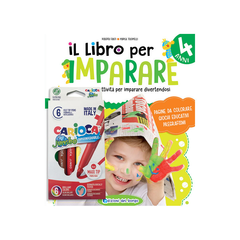 Questa collana propone ai bambini tante attività divertenti e di difficoltà calibrata a secondo dell'età di riferimento finalizzate allo sviluppo del pensiero logico, della motricità fine della mano e dell'apprendimento delle lettere e dei numeri. In abbinamento con ogni volume una scatola da 6 pennarelli Jumbo Carioca, perfetti per l'utilizzo in età prescolare. Età di lettura: da 4 anni.