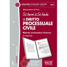 I volumi di "Schemari Simone" seguono i programmi tradizionali degli Atenei ponendosi come sussidio del manuale adottato per: delineare un quadro sistematico della materia; identificare, al pari delle «slides», i punti chiave e le linee generali della disciplina; dedicare maggiore attenzione agli argomenti «caldi» più frequentemente oggetto di domande d'esame; facilitare la lettura, agevolare la memorizzazione, velocizzare il ripasso. I volumi sono strutturati in pagine staccabili per essere facilmente inserite negli schedari a fogli mobili utilizzati per prendere appunti durante le lezioni. In particolare, gli Schemi & Schede di diritto processuale civile, costituiscono, per quanti si apprestano ad affrontare questa complessa disciplina, un utile supporto per la propria preparazione. Il lavoro, strutturato in tavole sinottiche e schemi articolati, presuppone già una conoscenza di base della materia e se ne raccomanda la contestuale (o successiva) consultazione del manuale istituzionale. Questa XV edizione affianca agli schemi tre differenti rubriche: osservazioni, che approfondisce aspetti rilevanti della disciplina; differenze, che analizza aspetti particolari della materia, stimolando i confronti e i paralleli fra i diversi istituti; in sintesi, che offre un quadro riepilogativo degli argomenti affrontati.