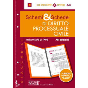 Questa nuova edizione dà conto di tutte le più recenti novità normative tra le quali è importante segnalare gli illeciti civili sottoposti a sanzione pecuniaria (D.Lgs. 7/2016), le unioni civili tra persone dello stesso sesso (L. 76/2016), la riforma del giudizio di cassazione (L. 197/2016). Inoltre, si è dato conto delle numerose novità in materia di processo esecutivo (D.L. 59/2016, conv. in L. 119/2016), dell'istituto dell'esecuzione forzata su beni donati o resi indisponibili a titolo gratuito (art. 2929bis c.c.) e della risoluzione extragiudiziale delle controversie dei consumatori. Come le precedenti edizioni il volume fornisce un utile strumento di ripasso da affiancare al manuale tradizionale, per coloro i quali, già avviati allo studio della procedura civile, intendano perfezionare la propria preparazione in vista di esami e concorsi. Tutti gli argomenti sono strutturati in tavole sinottiche e schemi che consentono di individuare immediatamente i punti salienti di ogni fase processuale e di sviluppare collegamenti tra i vari istituti. Inoltre, ampio spazio è riservato al dato giurisprudenziale, soprattutto agli orientamenti dettati dalle Sezioni Unite della Cassazione, dai quali non si può prescindere neanche in sede di preparazione degli esami universitari. Il lavoro si giova di un dettagliato e completo indice sistematico-analitico, che consente una rapida ricerca degli argomenti trattati. Un particolare ringraziamento va rivolto alla redazione per la collaborazione nell'aggiornamento e nella revisione del testo.