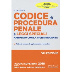 "I codici superiori" sono il risultato dell'impegno profuso da giuristi autorevoli e del confronto intellettuale tra avvocati, professori e magistrati. "I codici superiori" annotati con giurisprudenza si presentano come uno strumento indispensabile per la professione e la redazione di atti e pareri. La nuova edizione è stata meticolosamente rivista al fine di conferirle omogeneità e uniformità ed agevolare il professionista nella consultazione della medesima. Il Codice è aggiornato alle più recenti novità legislative (v., da ultimo, il decreto del Ministero della Giustizia 8 giugno 2015, n. 88 che reca la disciplina delle convenzioni in materia di pubblica utilità ai fini della messa alla prova dell'imputato) e alle questioni giurisprudenziali dell'ultimo minuto (v., tra le altre, sent. Cass. pen., sez. IV, 6 luglio 2015, n. 30508 sull'applicazione del principio tempus regit actum in materia di misure cautelari).