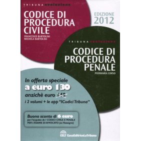 Il cofanetto contiene il Codice di procedura civile ed il Codice di procedura penale collana Evoluzione al prezzo speciale di euro 130 anziché 148. Ogni articolo del Codice di procedura civile e del Codice di procedura penale è accompagnato, in calce, da un ampio commento giurisprudenziale, aggiornato con le massime delle sentenze più recenti e significative, emesse dalla Corte di cassazione e dalla Corte costituzionale. Le massime giurisprudenziali offrono una panoramica degli indirizzi sino ad oggi affermatisi, evidenziando la composizione dei contrasti o il consolidamento degli orientamenti interpretativi operati dalle Sezioni Unite, nonchè gli indirizzi forniti dalla Consulta.