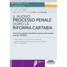 Il Nuovo Processo Penale dopo la Riforma Cartabia è una monografia operativa sulla Riforma del processo penale introdotta dal D.Lgs. 150/2022, aggiornato alle ultime modifiche disposte dal D.L. 162/2022 conv. in L. 199/2022, che analizza tutte le novità previste dalla Riforma Cartabia: dalla fase delle indagini preliminari e al dibattimento, dalle impugnazioni all'esecuzione ai riti alternativi. Una particolare attenzione è stata rivolta al processo in absentia e alla disciplina organica della giustizia riparativa. Completa il lavoro un'appendice con tutti gli articoli riformati con testo a fronte.