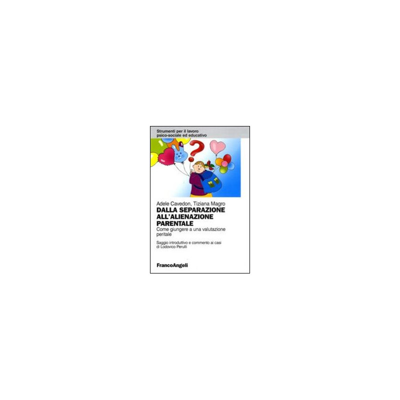 A partire da una riflessione sulle conseguenze che possono sorgere nei figli, in contesti di separazione e divorzio, in seguito alla campagna denigratoria di un genitore nei confronti dell'altro - Richard A. Gardner ha parlato per primo di "Sindrome da Alienazione Parentale" (PAS) - il volume progredisce poi, attraverso i più recenti studi sull'argomento, verso un'analisi differenziale sempre più accurata di cosa sia e di cosa non sia "alienazione". Il testo si articola in due parti: la prima presenta una rassegna teorico-clinica che, a partire dagli studi di Gardner, definisce poi il "Disturbo da Alienazione Parentale" (PAD) e altri disturbi che, pur presentando alcune affinità, non possono essere ad esso assimilati; la seconda, invece, presenta cinque casi in cui vengono illustrati, passo dopo passo, gli elementi e le valutazioni che permettono di arrivare a discriminare i casi di PAD dai casi di non PAD. Ciascun caso è arricchito dal commento del neuropsichiatria Lodovico Perulli. Il volume si caratterizza per un taglio eminentemente "operativo", che lo rende un utile strumento di approfondimento e di lavoro per tecnici giuridici e forensi, consulenti dei Tribunali, psicologi clinici e dei servizi territoriali e operatori sociali, ma anche per i giuristi che si occupano di diritto di famiglia.