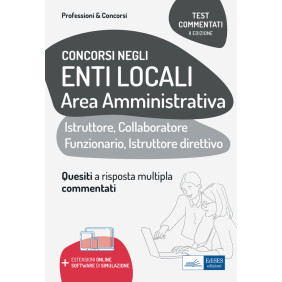 Il volume è rivolto a quanti partecipano ai concorsi per i profili amministrativi indetti dagli enti locali e raccoglie numerose batterie di quiz a risposta multipla (con soluzioni ampiamente commentate) utili per una preparazione mirata alle prove concorsuali. Le domande coprono tutte le materie oggetto delle prove concorsuali, partendo dalle discipline di base (diritto costituzionale, amministrativo, civile, degli enti locali, rapporto di pubblico impiego, ordinamento contabile e finanziario, reati contro la P.A.) e proseguendo con quelle specialistiche dell'Area amministrativa per i profili professionali indicati (attività, procedimento e privacy, anticorruzione e trasparenza, servizi comunali di interesse statale, principali servizi erogati dagli enti locali, attività contrattuale). I quesiti proposti sono stati selezionati in modo da renderli il più possibile simili (per argomento e difficoltà) a quelli generalmente oggetto delle prove di selezione. Con software online in omaggio per simulare lo svolgimento delle prove selettive.