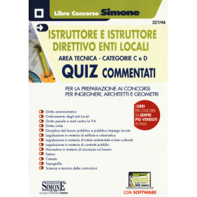 Il volume rappresenta uno strumento utile per la preparazione ai concorsi banditi dagli Enti locali per i ruoli di Istruttore e Istruttore Direttivo nell'area tecnica (ingegnere, architetto e geometra). Il testo raccoglie più di 900 quiz a risposta multipla commentati sulle materie che sono generalmente richieste alle prove d'esame, ossia: Diritto amministrativo; Ordinamento degli enti locali; Elementi di Diritto penale e reati contro la P.A.; Nozioni di Diritto civile; Disciplina del lavoro pubblico e pubblico impiego locale; Legislazione in materia di edilizia e urbanistica; Legislazione in materia di tutela ambientale e beni culturali; Legislazione in materia di contratti pubblici; Normativa in materia di salute e sicurezza nei luoghi di lavoro; Nozioni di Estimo; Normativa essenziale in materia di Catasto; Elementi di Topografia; Scienza e tecnica delle costruzioni. Le discipline trattate sono aggiornate ai più recenti provvedimenti legislativi dai quali sono state interessate, tra cui segnaliamo, in particolare, la L. 14-6-2019, n. 55 di conversione del D.L. 18-4-2019, n. 32 (cosiddetto Decreto «sblocca cantieri»). Grazie al software, accessibile tramite il QR Code rinvenibile nel testo, sarà più semplice esercitarsi in vista della prova.