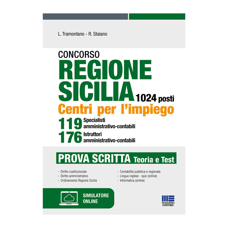 Il volume si presenta come utile strumento di preparazione alla prova scritta dei Concorsi indetti dalla Regione Sicilia per l'assunzione presso i Centri per l'impiego regionali di 119 Specialisti (cat. D) e 176 Istruttori (cat. C) amministrativo contabili. La prova scritta consisterà in un test di 60 quiz a risposta multipla sulle materie indicate dal bando. Il testo propone una trattazione teorica sulle materie richieste ai candidati, ovvero: Diritto costituzionale (compreso il sistema delle fonti e delle istituzioni dell'Unione europea, e regionale) con particolare riferimento all'assetto delle competenze secondo il Titolo V della Costituzione; Diritto amministrativo (procedimento e atti amm., codice dei contratti pubblici, pubblico impiego e impiego nella regione sicilia, diritti e doveri pubblici dipendenti; Ordinamento Regione Sicilia; Trasparenza, anticorruzione, privacy; Contabilità pubblica e ordinamento finanziario e contabile delle Regioni. Nella sezione online collegata, raggiungibile seguendo le istruzioni riportate in fondo al libro, sono disponibili: quiz di lingua inglese; teoria e quiz di informatica; simulatore di quiz con tutte le materie richieste dal bando.