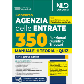 L'Agenzia delle Entrate ha indetto una selezione pubblica per l'assunzione a tempo indeterminato per il reclutamento di350unità per l'area dei Funzionari, famiglia professionale Funzionario giuridico - tributario. La procedura selettiva è affidata ad una prova scritta articolata in due parti. Il Volume Agenzia delle Entrate. 350 Funzionari giuridico-tributari. Teoria e Quiz. NLD Concorsi 2025si caratterizza per una trattazione completa, aggiornata e, al contempo, schematica e fluida delle seguenti materie: Diritto tributario ed elementi di teoria dell'imposta; Diritto civile e commerciale; Diritto amministrativo; Contabilità aziendale; Elementi di diritto penale, con particolare riferimento ai reati tributari; Lingua inglese (online) Conoscenza dell'uso delle apparecchiature e delle applicazioni informatiche più diffuse (online). Il Volume è aggiornato alle più recenti novità legislative, tra cui si segnalano il D.l. 11 aprile2025, n. 48 (Decreto Sicurezza), la L. 14 marzo2025, n. 35 (Responsabilità dei sindaci), il D.L. 14 marzo2025, n. 25 (c.d.Decreto P.A.) e la L. 21 febbraio2025, n. 15, di conv. del D.Lgs. 27 dicembre 2024, n. 202 (c.d.Milleproroghe). Per consentire di affiancare allo studio teorico un'immediata verifica della acquisita capacità di risolvere i corrispondenti test, il Manuale presenta quiz di verifica online suddivisi per ciascuna Parte o per singoli Capitoli. Il Volume permette, infine, l'accesso ad un'estensione online consultabile con apposita password per rimanere sempre aggiornati sulle materie trattate e per accedere al simulatore online.