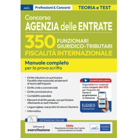 Manuale per la preparazione alla prova scritta unica del concorso 350 Funzionari fiscalità internazionale all'Agenzia delle Entrate.Il testo comprende tutte le materie previste dal bando:Diritto tributario (in particolare Fiscalità internazionale) ed elementi di teoria dell'impostaDiritto civile e commercialeDiritto amministrativoContabilità aziendaleElementi di diritto penale, con particolare riferimento ai reati tributariLingua inglese: casi pratici di natura tributariaInformaticaIn omaggio con il volume il software di simulazione per infinite esercitazioni.Scopri Eddie, l'assistente virtuale EdiSES