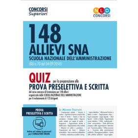 Nella Gazzetta Ufficiale 4ª Serie speciale "Concorsi ed Esami" del 4 settembre 2018 n. 70 è stato pubblicato il bando di concorso per l'ammissione di 148 allievi al corso-concorso selettivo di formazione organizzato dalla Scuola Nazionale dell'Amministrazione (SNA) per il reclutamento di 123 dirigenti. Lo svolgimento del corso-concorso prevede tre prove scritte e una orale. La prova preselettiva (laddove espletata) consisterà in un test composto da 60 quesiti a risposta multipla, di cui 24 quesiti di ragionamento logico e 36 quesiti diretti a verificare il possesso di conoscenze in specifiche materie, che saranno oggetto anche delle prove scritte. Il presente volume costituisce uno strumento utile per la preparazione alla prova preselettiva del corso-concorso e contiene un'ampia selezione di quiz delle seguenti tipologie: Comprensione verbale; Sinonimi e contrari; Significati di termini e modi di dire; Serie di termini; Termini e frasi da completare; Analogie verbali; Ragionamento verbale con coppie di parole; Anagrammi; Ragionamento astratto e abilità visiva; Ragionamento critico verbale; Relazioni di ordine e grandezza; Comprensione dei brani; Relazioni insiemistiche; Serie numeriche e alfabetiche; Aritmetica, matematica e problem solving; Logica deduttiva; Abbinamenti termini o lettere e numeri; Ragionamento critico; Figure scomposte; Logica figurale; Serie figurali; Grafici e tabelle; Ragionamento numeri deduttivo. Ciascuna sezione dei quiz di logica contenente le spiegazioni delle metodologie risolutive dei quesiti. Completa il volume un'ampia selezione di quiz a risposta multipla delle seguenti materie, previste dal bando di concorso: diritto costituzionale, diritto amministrativo, diritto dell'Unione europea e delle organizzazioni internazionali, economia politica, politica economica, economia delle amministrazioni pubbliche, management pubblico, analisi delle politiche pubbliche, lingua inglese. Il Manuale permette l'accesso gratuito al simulatore on line con il quale è possibile esercitarsi con batterie di domande a risposta multipla consultabile con apposita password presente nel retro del volume.