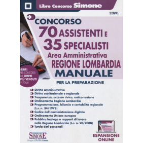 Il libro "Concorso 70 Assistenti e 35 Specialisti. Area Amministrativa. Regione Lombardia. Manuale per la preparazione" s'indirizza a coloro che devono prepararsi per le procedure concorsuali indette dalla Regione Lombardia e relative ai seguenti profili professionali da inserire presso la Giunta regionale: 35 specialisti area amministrativa; 70 assistenti area amministrativa. Il Manuale contiene la trattazione teorica delle materie previste dal programma del bando ed è utile ai fini della preparazione di tutte le prove previste dal concorso, preselettiva (solo per i 70 assistenti amministrativi), scritta e orale. Esso è così strutturato: Parte I,Diritto costituzionale e regionale, con particolare riferimento all'assetto delle competenze secondo il Titolo V della Costituzione e allo Statuto d'autonomia della Regione Lombardia; Parte II, Diritto dell'Unione europea. Rapporti tra l'ordinamento UE e l'ordinamento interno; Parte III, Diritto amministrativo, con particolare riferimento al procedimento amministrativo, alla documentazione amministrativa e all'accesso. I contratti pubblici; Parte IV, Normativa di anticorruzione, trasparenza e tutela dei dati personali (privacy); Parte V, Ordinamento del lavoro nelle PP.AA. e Testo unico in materia di organizzazione e di rapporti di lavoro nella Regione Lombardia (L.r. 20/2008); Parte VI, Codice dell'amministrazione digitale; Parte VII, Programmazione, bilancio e contabilità regionale (L.r. 34/1978 e s.m.i.). Il Manuale è fornito inoltre di numerose espansioni online di approfondimento e normative, accessibili tramite QR Code. Per completare la preparazione, si consiglia anche il volume "70 Assistenti e 35 Specialisti. Area Amministrativa. Regione Lombardia. Quiz Commentati".