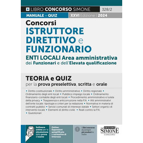 Il manuale Concorsi Istruttore direttivo e Funzionario, giunto alla XXVI edizione, risponde alle esigenze di coloro che si preparano per affrontare le prove preselettive, scritte e orali di concorsi banditi dagli enti locali per l'accesso all'Area amministrativa dei Funzionari e dell'Elevata qualificazione, corrispondente alla precedente categoria D (così come previsto dal CCNL Funzioni locali del 16-11-2022). Il testo, infatti, illustra tutte le materie generalmente richieste nei bandi, aggiornate alle più recenti novità legislative e giurisprudenziali, ed è così strutturato: parte I, diritto costituzionale; parte II, diritto regionale; parte III, diritto amministrativo: organizzazione della P.A., beni e giustizia; parte IV, ordinamento istituzionale degli enti locali; parte V, pubblico impiego locale; parte VI, ordinamento finanziario-contabile degli enti locali; parte VII, l'attività amministrativa. Procedimento, accesso e privacy; parte VIII, trasparenza e anticorruzione nelle pubbliche amministrazioni; parte IX, atti amministrativi dell'ente locale: tipologie e criteri per la redazione; parte X, normativa in tema di contratti pubblici; parte XI, i servizi comunali di interesse statale; parte XII, I settori organici di intervento locale; parte XIII, Elementi di diritto civile; parte XIV, Reati contro la P.A.; parte XV, questionari. Per la preparazione alle prove a carattere teorico-pratico, all'interno della Parte dedicata alla redazione degli atti, è proposta una rassegna di modelli di atti tipici dell'ente locale. Inoltre il Manuale per la preparazione ai concorsi come Istruttore e Funzionario nell'Area Amministrativa degli Enti Locali presenta, attraverso l'accesso nell'area riservata (accessibile tramite QR Code), inoltre disponibili diverse risorse online, quali: un software con migliaia di quiz per esercitarsi in vista della prova d'esame e testare il grado di preparazione raggiunto; espansioni semplificate in cui si evidenziano concetti fondamentali e parole chiave di ogni disciplina, particolarmente utili per chi non ha mai studiato diritto; approfondimenti e normativa d'interesse.