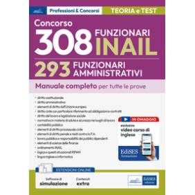Il volume è rivolto ai partecipanti al concorso RIPAM per 293 Funzionari amministrativi presso l'Istituto Nazionale contro gli Infortuni sul Lavoro (INAIL) (concorso per complessivi 308 posti vari profili). Questo manuale raccoglie tutte le materie indicate dal bando per la prova scritta e per la prova orale: diritto costituzionale; diritto amministrativo; elementi di diritto dell'Unione europea; diritto civile con particolare riferimento ad obbligazioni e contratti; diritto del lavoro e legislazione sociale; normativa in materia di salute e sicurezza nei luoghi di lavoro; contabilità pubblica; elementi di diritto processuale civile; elementi di diritto penale, con particolare riferimento ai reati contro la Pubblica Amministrazione; disciplina del lavoro pubblico e responsabilità dei pubblici dipendenti; elementi di scienze delle finanze (estensione online); ordinamento e attribuzioni dell'Istituto Nazionale per l'Assicurazione contro gli Infortuni sul Lavoro (estensione online); capacità logico-deduttiva e di ragionamento critico-verbale (estensione online); quesiti situazionali (estensione online); lingua inglese e informatica (estensione online).