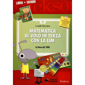Il CD-ROM: Il software presenta sullo schermo della lavagna LIM (Lavagna Interattiva Multimediale) le pagine del libro "La linea del 1000" (Erickson, 2009) opportunamente focalizzate e ingrandite, esercizio per esercizio, per essere fruibili dall'intera classe. Questa visione dettagliata delle attività, suddivise in più di 220 tappe, consente di percorrere in velocità l'intero programma della classe terza. L'insegnante si trova così agevolato all'interno di un percorso già strutturato, e gli alunni possono concentrarsi sul lavoro senza perdere tempo nella copiatura dell'esercizio. La presenza di animazioni e utili indicazioni audio sull'esecuzione degli esercizi permette all'alunno un apprendimento diretto e autonomo. Le animazioni permettono di comprendere senza fatica i passaggi necessari per la risoluzione dei problemi aritmetici e geometrici, oltre a illustrare la composizione delle cornicette; gli audio, mirati e differenziati, agevolano la risoluzione e la comprensione delle strategie da adottare nella risoluzione degli esercizi, senza però compromettere l'apprendimento. Inoltre il software, corredato da una serie di pratici strumenti per l'insegnamento e lo svolgimento degli esercizi, rappresenta una valida alternativa all'apprendimento convenzionale ed è particolarmente efficace con alunni in difficoltà.