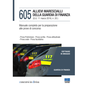 Il libro è indirizzato a quanti si preparano ad affrontare il concorso per l'ammissione all'88° corso annuale (2016-2017) di 605 Allievi Marescialli presso la Scuola Ispettori e Sovrintendenti della Guardia di Finanza. Lo svolgimento del concorso prevede: una prova preliminare, consistente in questionari a risposta multipla diretti ad accertare le abilità linguistiche, ortogrammaticali e sintattiche della lingua italiana; una prova scritta di composizione italiana; l'accertamento dell'idoneità attitudinale; l'accertamento dell'idoneità psico-fisica; una prova orale di cultura generale; un esame facoltativo in una o più lingue estere; una prova facoltativa di informatica. Il testo accompagna il candidato attraverso tutte le prove, offrendo una trattazione sintetica ma completa di tutte le materie previste dal bando di concorso dalla prova preliminare alla prova orale. Tutti gli argomenti trattati sono il risultato di un approfondito studio di precedenti selezioni bandite dalla Guardia di Finanza.