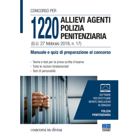 Il manuale si indirizza a quanti partecipano al concorso pubblico, pubblicato in Gazzetta Ufficiale n. 17 del 27 febbraio 2018, a 1220 allievi agenti del Corpo di polizia penitenziaria, di cui 366 posti aperti ai civili, 598 riservati a coloro che sono in servizio e 256 riservati ai volontari in ferma prefissata collocati in congedo. Il testo, in stretta aderenza con quanto previsto dal bando, propone innanzitutto le nozioni essenziali per prepararsi alla prova scritta d'esame, vertente su una serie di domande a risposta sintetica o a scelta multipla su argomenti di cultura generale e sulle materie previste nei programmi della scuola dell'obbligo. L'opera offre, infatti, una trattazione completa, chiara e aggiornata delle seguenti materie: Letteratura italiana, Grammatica italiana, Storia, Storia dell'arte, Geografia, Educazione civica, Matematica, Geometria, Discipline scientifiche. Per ciascuna materia, oltre a una sintesi dei principali argomenti d'esame, il testo propone una raccolta di quesiti per verificare il grado di preparazione raggiunto e allenarsi alla prova scritta. Il volume offre anche una parte di Informatica, una trattazione schematica ma esauriente e seguita da relativi quesiti per attestare il livello di preparazione nell'uso di apparecchiature e applicazioni. Nel testo sono inoltre previste batterie di quesiti a risposta multipla in lingua inglese e francese: attraverso il commento alle risposte esatte si ripercorrono le principali regole delle due lingue. La parte finale dell'opera descrive invece i principali test di personalità, fornendo indicazioni su come affrontarli in vista della prova attitudinale. Per le sue caratteristiche, il volume costituisce quindi uno strumento mirato e indispensabile per acquisire o ripassare in poco tempo tutte le nozioni fondamentali per l'iter concorsuale. Al sito moduli.maggioli.it è inoltre possibile accedere a un software per prepararsi alle possibili domande a scelta multipla della prova scritta d'esame ed effettuare così infinite simulazioni.