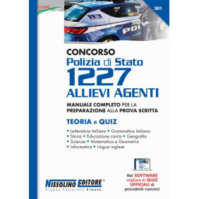 Il manuale «Concorso Polizia di Stato - 1227 allievi agenti» è un testo completo per la preparazione alla prova scritta del concorso, bandito sulla G.U. n. 56 del 16 luglio 2021, riservato ai volontari in ferma prefissata di un anno (VFP1) in servizio da almeno sei mesi continuativi, o in rafferma annuale, o collocati in congedo al termine della ferma annuale, e ai volontari in ferma quadriennale (VFP4) in servizio o in congedo. Il testo, che propone teoria e quiz, aderisce perfettamente alle indicazioni del bando, secondo cui la prova d'esame consisterà in un questionario composto da domande con risposta a scelta multipla riguardanti argomenti di cultura generale e materie della scuola media dell'obbligo, tese anche ad accertare un sufficiente livello di conoscenza dell'Inglese e dell'Informatica, in linea con gli standard europei. Pertanto la trattazione comprende: Letteratura italiana; Grammatica italiana; Storia; Educazione civica; Geografia; Scienze; Matematica e Geometria; Informatica; Lingua inglese (quiz con risposte commentate). A completamento dell'opera, un software (accessibile nell'area riservata) con migliaia di quiz ufficiali di precedenti concorsi, per infinite esercitazioni e simulazioni della prova d'esame.
