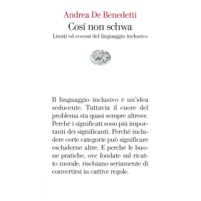 Il dibattito sul linguaggio inclusivo è tornato prepotentemente in auge negli ultimi tempi grazie a interventi di addetti ai lavori sul tema delle dissimmetrie di genere in italiano. Molto si discute, in particolare, con posizioni sempre più polarizzate e toni sempre più ruvidi, sulla proposta di utilizzare il simbolo fonetico dello «schwa», corrispondente a un suono vocalico «neutro», per superare il cosiddetto «binarismo» linguistico. In questo libro, partendo dalla questione del maschile «non marcato», si riflette sull'eccessiva importanza attribuita ai significanti rispetto ai significati e si propone un'analisi costi-benefici di una soluzione che, pur partendo da premesse in parte condivisibili, riduce il discorso sul linguaggio a una pura questione espressiva a scapito della dimensione comunicativa e di quella pragmatico-testuale, rivelando un atteggiamento moralmente ricattatorio e al tempo stesso elitista da parte di chi, in nome dell'inclusività, rischia di compromettere gravemente l'accessibilità e la funzionalità della lingua.