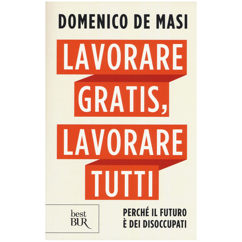 La crisi ci ha abituato a convivere con un altissimo tasso di disoccupazione, in particolare giovanile. Insieme ai disagi economici, lo stato di disoccupato porta con sé anche una specie di esclusione sociale, come se tutti fossero convinti che il lavoro esiste, basta trovarlo. I rimedi messi in atto dalle varie politiche economiche sono serviti a poco: l'occupazione cresce di pochi punti decimali ogni anno, e gli scarsi posti guadagnati sono sempre più volatili. In questo libro provocatorio, De Masi propone la sua ricetta per un futuro migliore. Prima di tutto è necessario affrontare il problema in tutta la sua gravità: la disoccupazione non solo non diminuirà, ma è destinata ad aumentare. Le macchine che una volta sostituivano l'uomo nei lavori manuali ora, grazie a software sempre più sofisticati, si preparano a svolgere le mansioni di medici, dirigenti e notai. II progresso tecnologico, quindi, produrrà beni e servizi utilizzando sempre meno lavoro umano; per questo è necessario trovare soluzioni nuove per ridistribuire la ricchezza in modo equo. Ecco perché i disoccupati, e tutti coloro che temono di diventarlo, devono adottare una strategia precisa di riscatto - lavorare gratis - per scardinare il modello economico esistente e diventare l'avanguardia di un movimento che punti alla creazione di un nuovo modello di convivenza sociale, libero dal lavoro e in definitiva più felice.