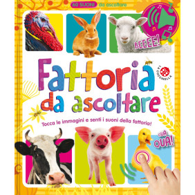 Un libro sonoro per imparare a conoscere tutto quello che succede in una fattoria. Basta premere sulle immagini di ogni pagina per ascoltare i suoni e i versi degli animali così ai bambini sembrerà proprio di averli davanti in carne ed ossa! Età di lettura: da 1 anno.