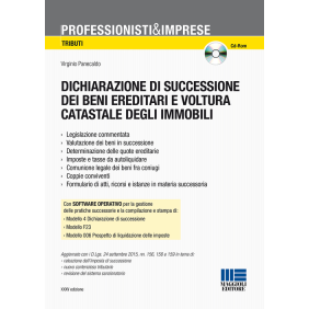Il volume - realizzato da uno dei più autorevoli esperti in materia successoria e catastale - è un'accurata guida di taglio pratico, che fornisce un approfondito commento ai vari adempimenti della dichiarazione di successione e della voltura catastale. La trattazione, che prende in esame anche questioni particolari e casistiche pratiche maggiormente frequenti, è corredata da numerosissimi richiami e riferimenti normativi e impreziosita da esempi di calcolo e casi svolti, figure e modelli compilati, oltre che da un ricco formulario di atti, istanze, domande e ricorsi di natura sia extraprocessuale che contenziosa, riportati anche sul Cd-Rom allegato per la personalizzazione e la stampa. Questa trentacinquesima edizione tiene conto delle novità previste dai decreti legislativi che hanno dato attuazione alla c.d. Delega fiscale (D.Lgs. 24 settembre 2015, nn. 156, 158 e 159) in tema di rateazione dell'imposta di successione, di ricorsi tributari e contenzioso in materia successoria e della nuova disciplina del sistema sanzionatorio in caso di mancato o tardivo assolvimento delle imposte di successione e donazione, di registro, ipotecarie e catastali. Valore aggiunto all'opera è conferito dal software operativo per la Dichiarazione di successione, semplice e di utilizzo intuitivo, in grado di gestire l'archivio delle pratiche successorie, provvedere al riparto di imposte e tasse, compilare e stampare.