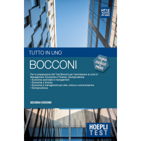Tutto in uno (Teoria + Esercizi + Prove simulate) è un volume unico e completo per una preparazione a 360 gradi del test di ammissione ai corsi delle aree disciplinari di economia, giurisprudenza, management, finanza, scienze politiche dell'Università Bocconi. Suddiviso per materia d'esame, contiene gli argomenti previsti dagli ultimi criteri di selezione. Il volume comprende: numerose tipologie di Ragionamento logico e argomenti di Matematica trattati singolarmente con una struttura a pagine affiancate che prevede la trattazione teorica sulla pagina sinistra ed esercizi specifici sulla pagina destra; esempi ed esercizi mirati per ciascuno argomento trattato, sempre risolti e commentati, per mettere in pratica quanto studiato; ampia selezione di brani e relative domande di comprensione completi di soluzione; 4 prove simulate da 100 quesiti tutte complete di soluzioni commentate.